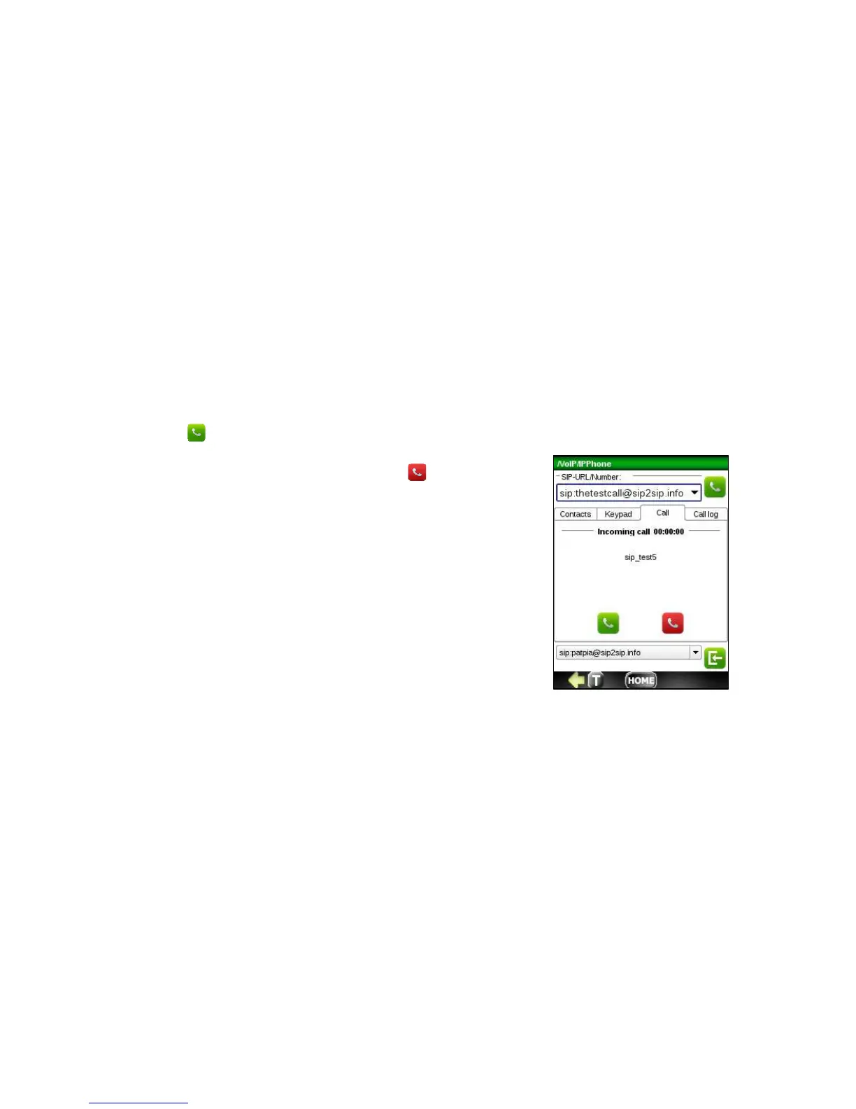 When you receive a call, the application will switch to the Call Tab and the caller’s number or name is displayed. You also