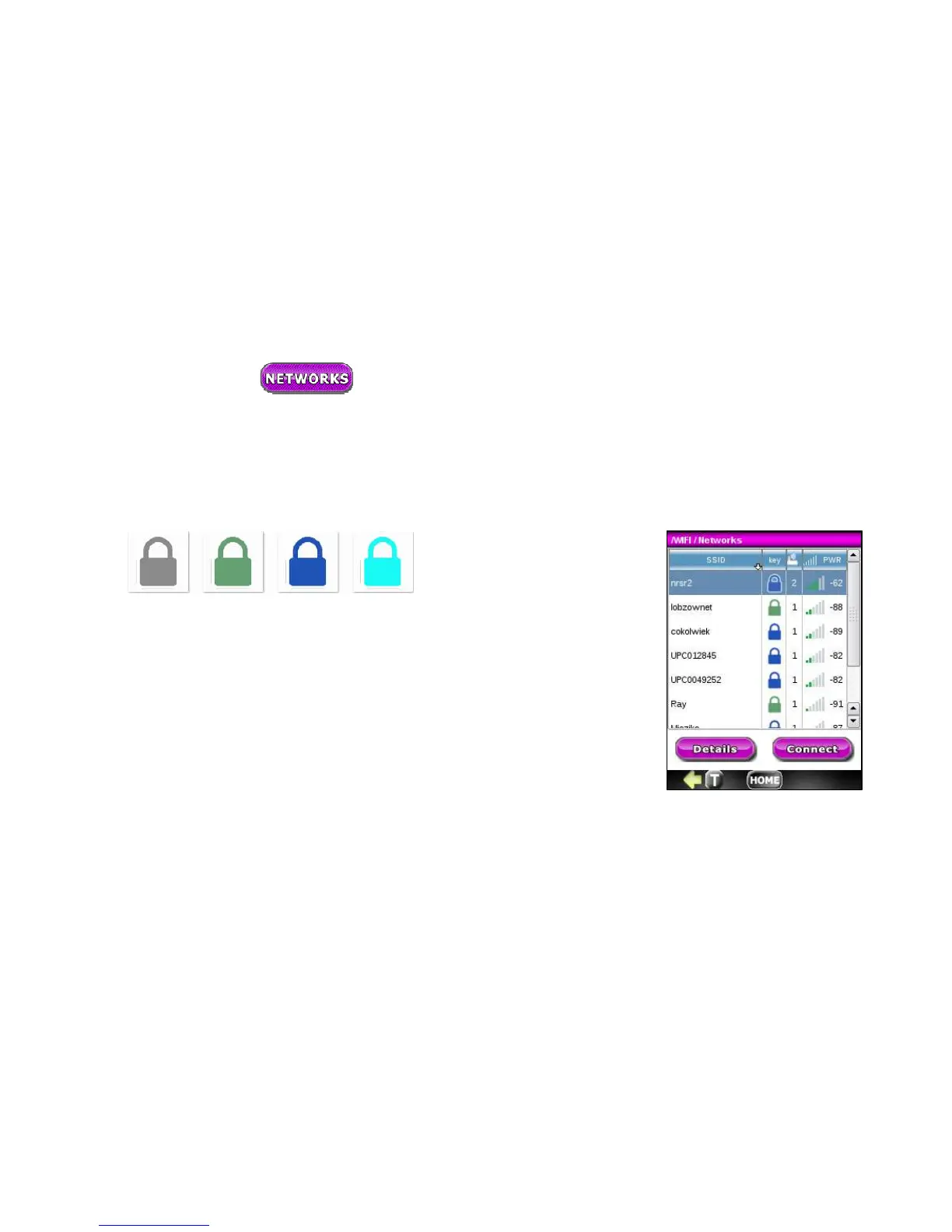 press the Networks button, the NetProbe begins immediately sniffing for 802.11 b/g/n WiFi- networks. Discovered
