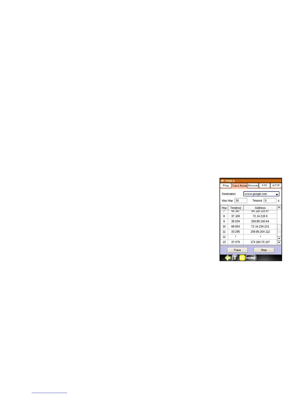 address of each hop from the NetProbe to each successive node. Press the STOP button