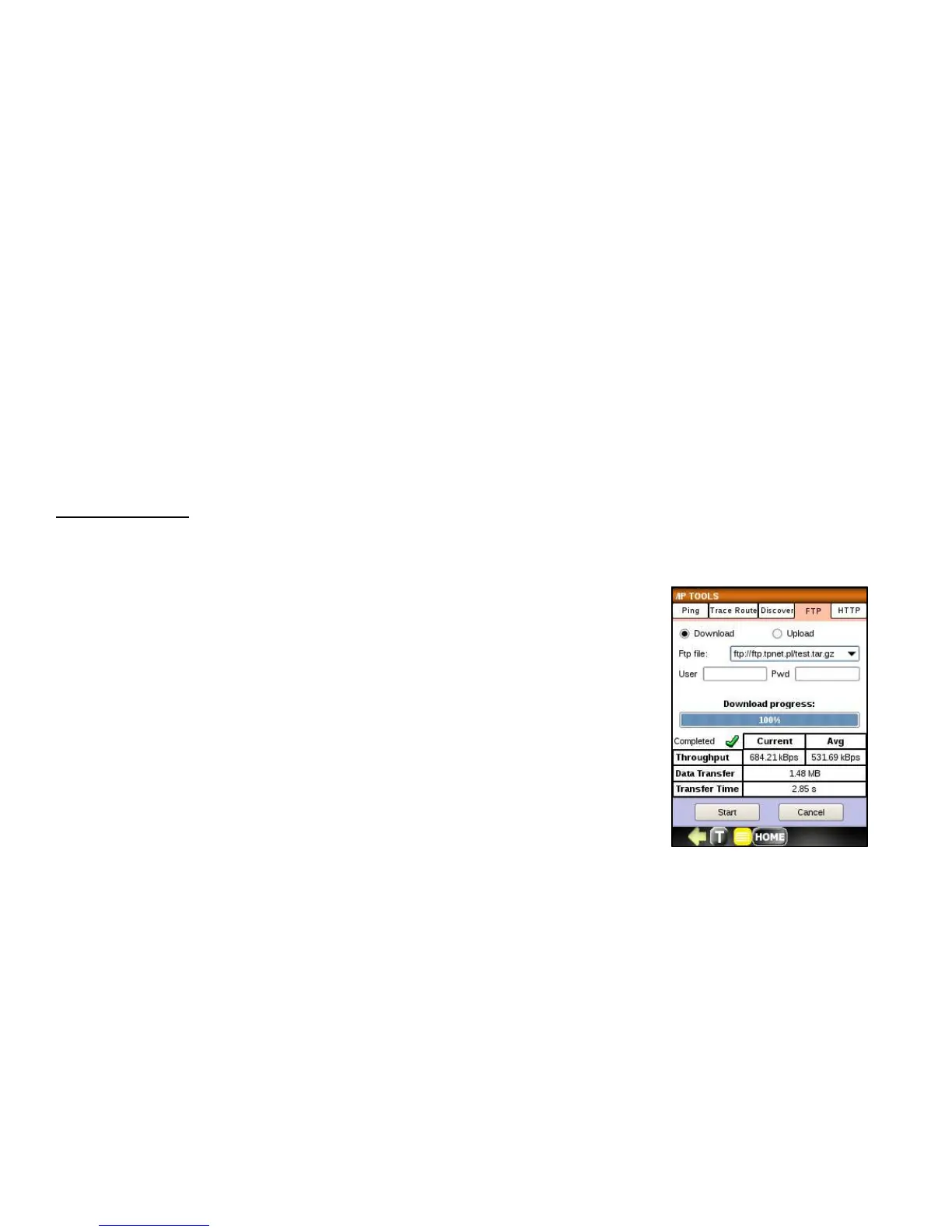 FTP is used to check the status of an FTP server by measuring the time from to download a host file to the NetProbe or