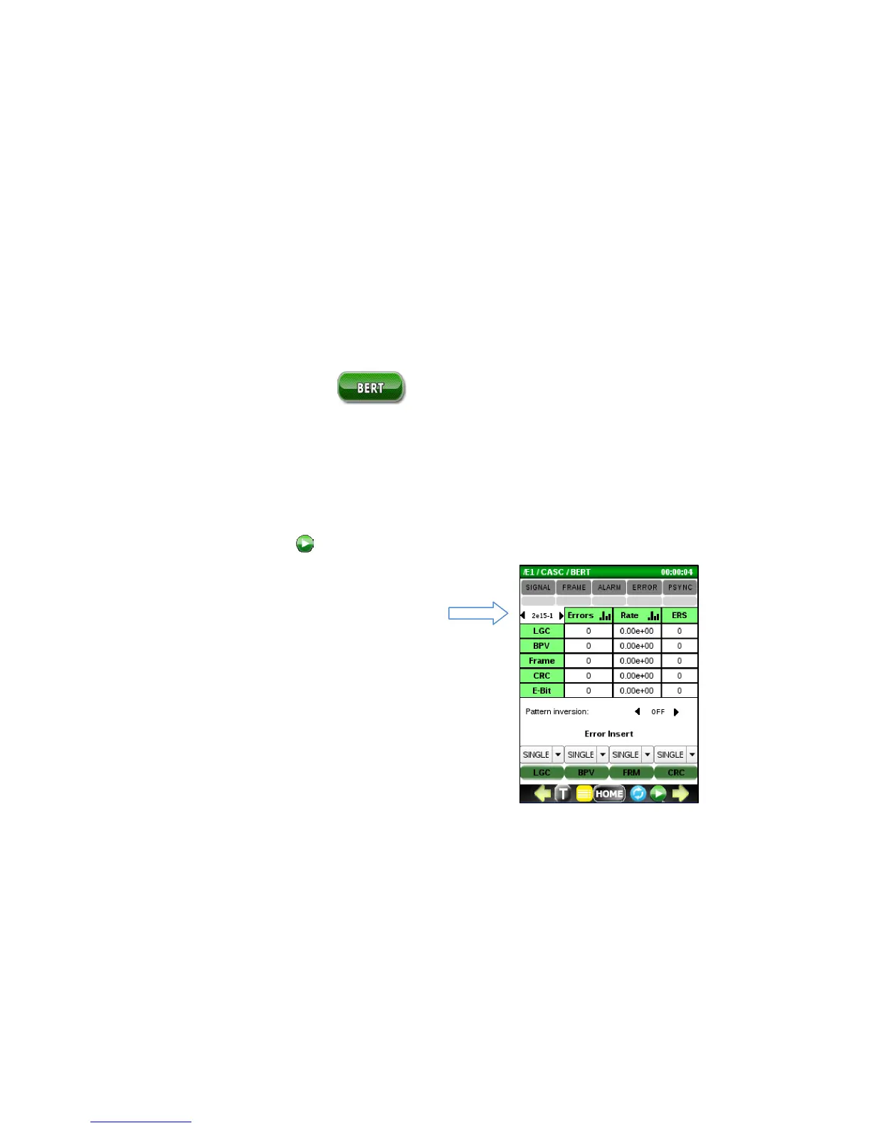Run the BERT application to check the integrity of an E1 circuit. It can be run with a loopback or end to end with another
