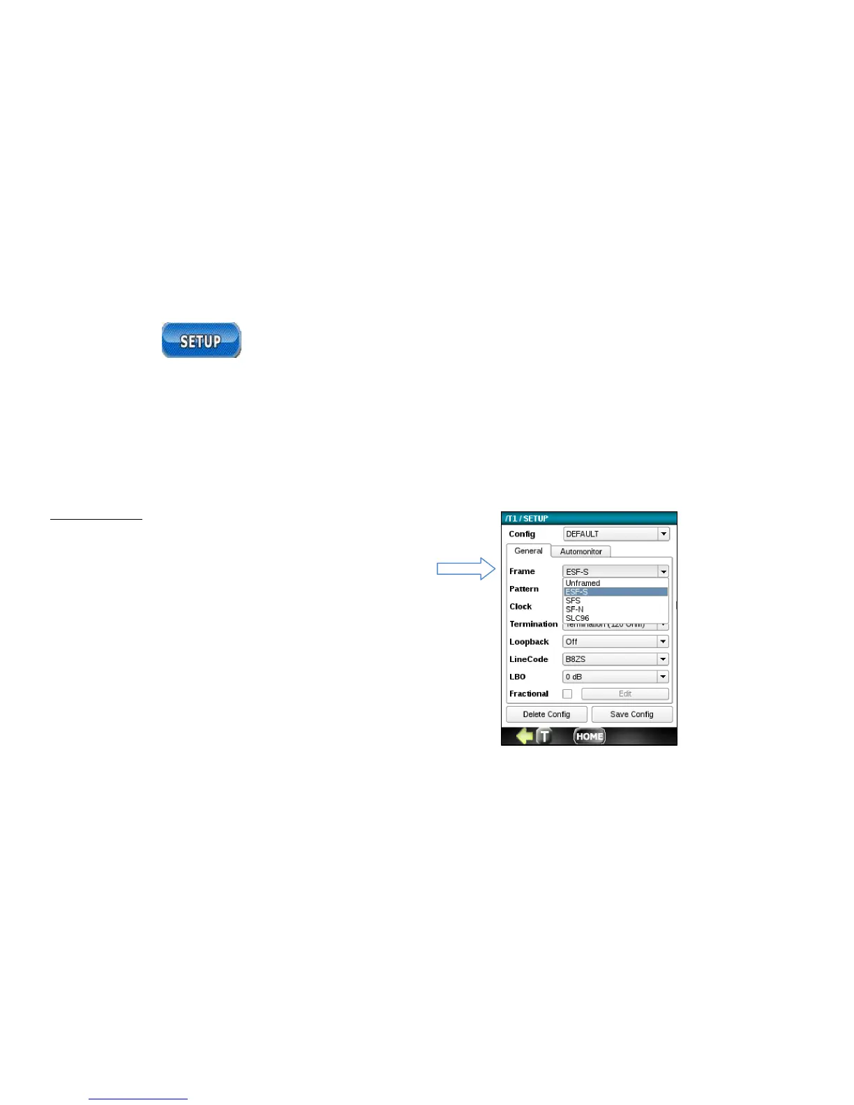 Use the Setup menu to configure the T1 transmitter and receiver parameters listed under the General configuration tab.