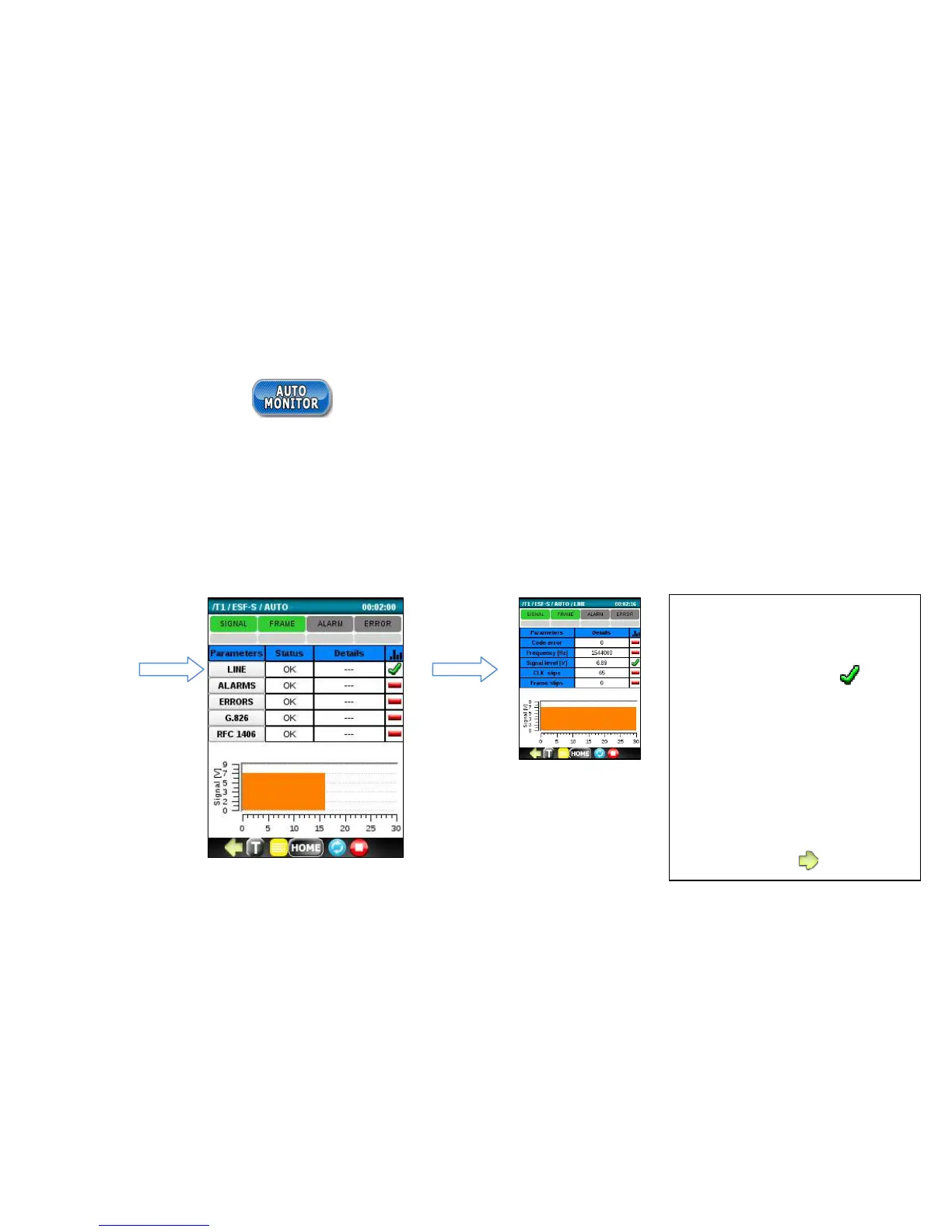 Run the AUTO MONITOR application to automatically check the tested T1 signal for the following Parameter categories: