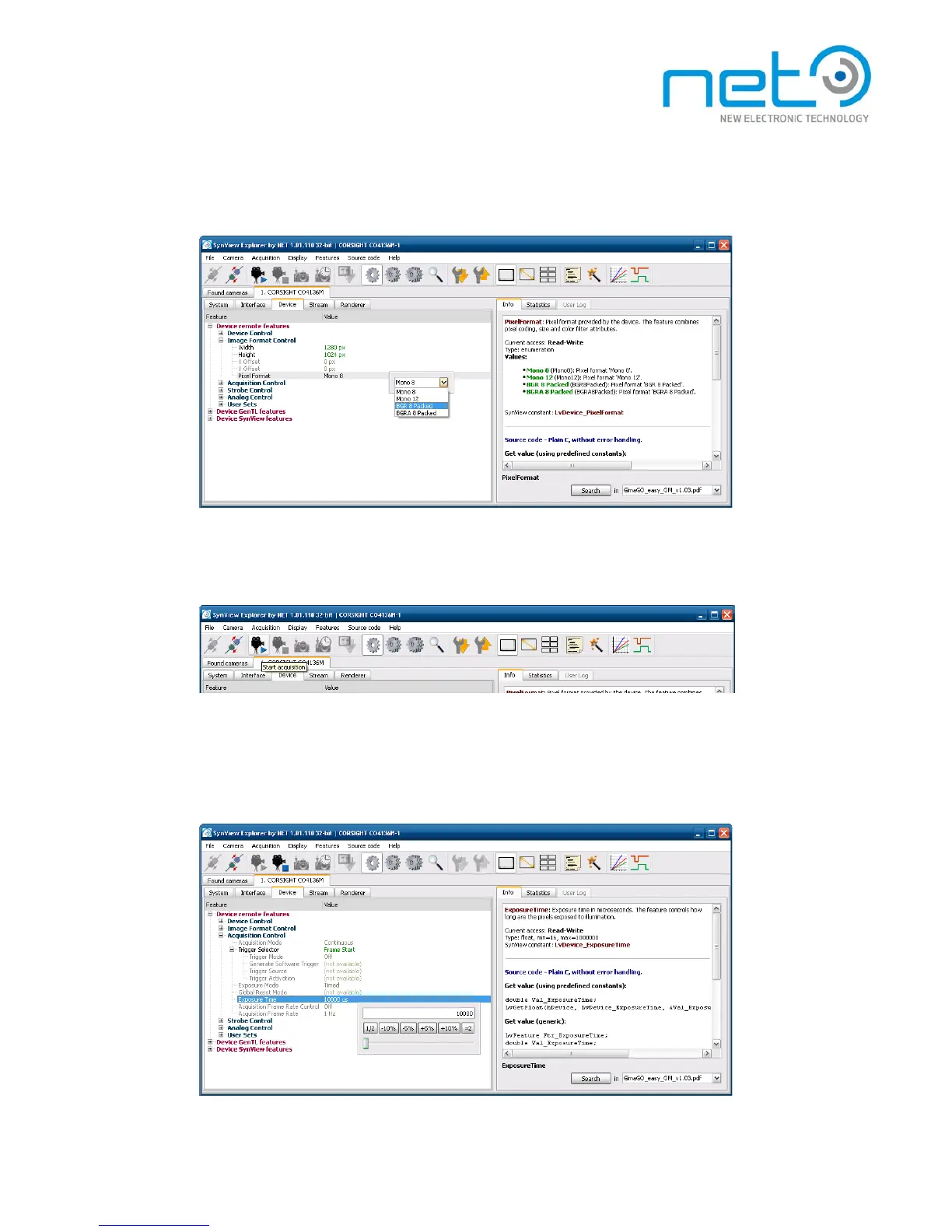 time or gain. Basic acquisition parameters, such as pixel format or trigger mode become l o c k e d