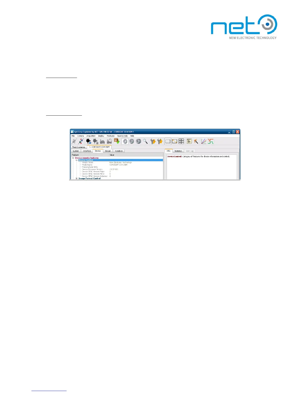 The version of the firmware loaded on the camera is accessible as string in feature Device Firmware