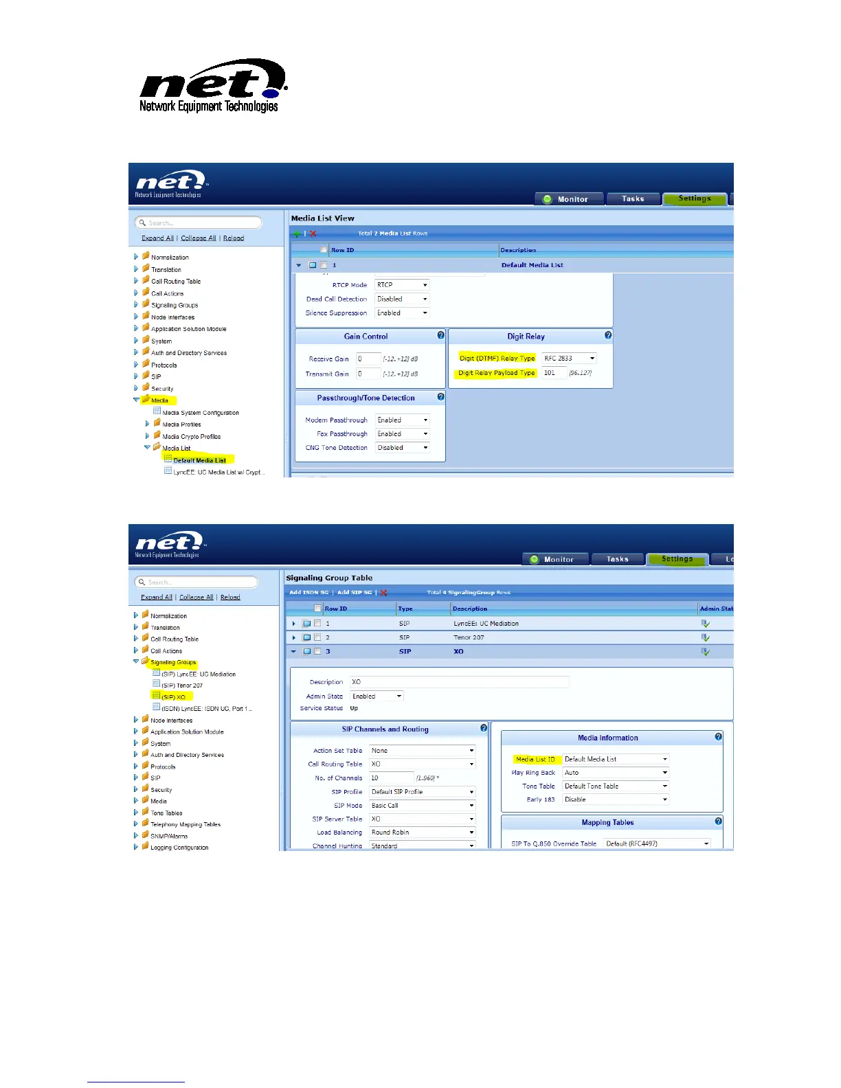 Figure 29 Media List (cont) Showing Digit Relay Settings