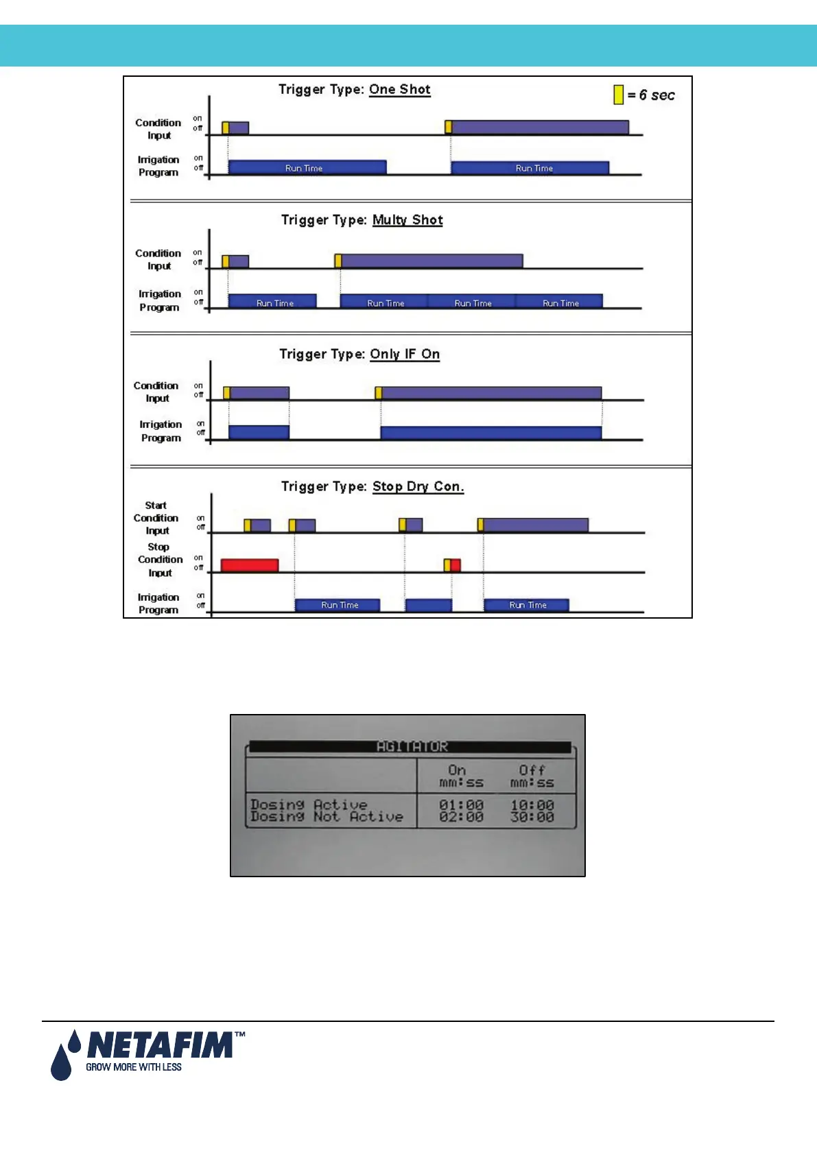 • Dosing Active: Definition of the On and Off times of the agitator when dosing is taking place: