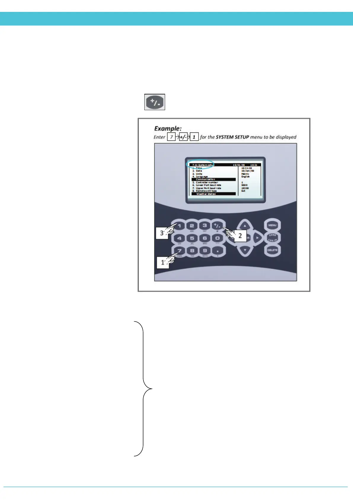 corresponding numeric keys of the menu (top left of screen) from the Main Menu screen.