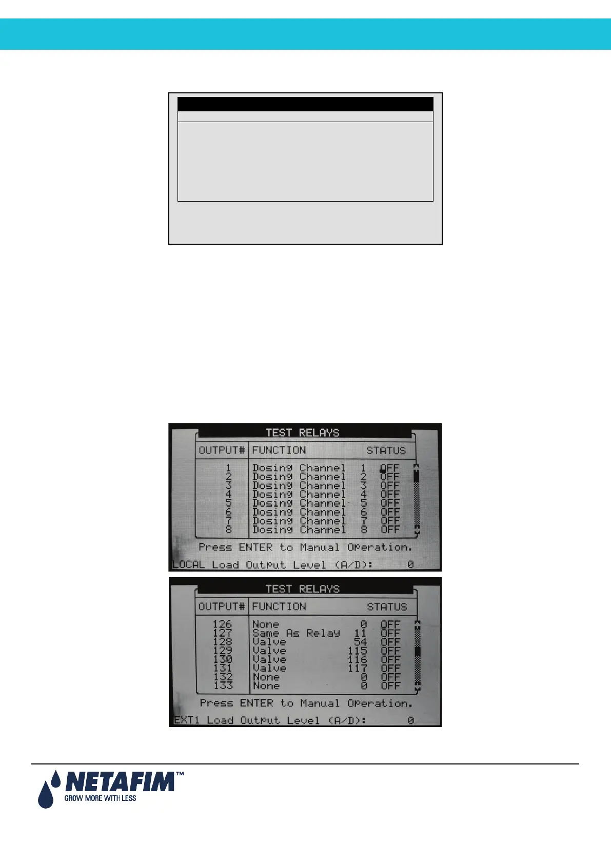 The Relays Test screen allows you to check the current output status and verify proper operation.