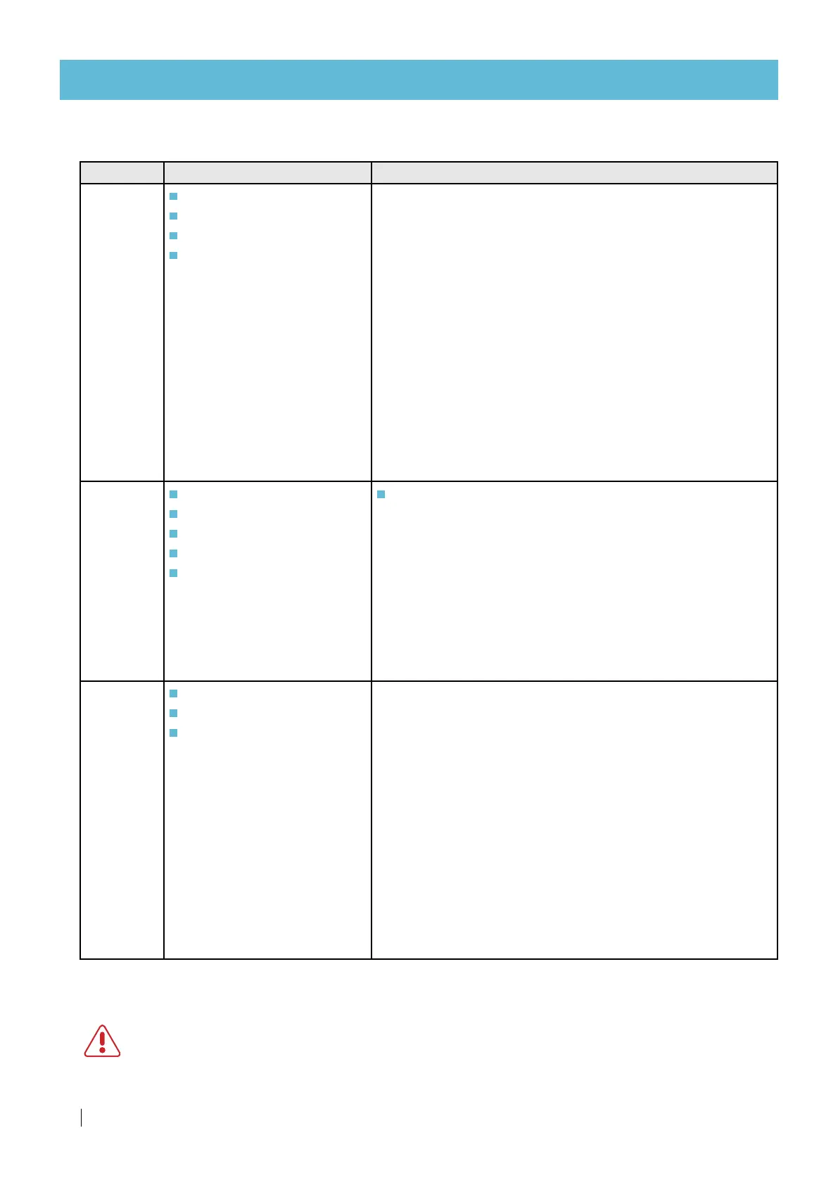 Problem Possible causes Solution