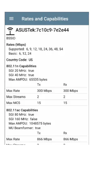 the transmit and receive rates and 802.11 cap-