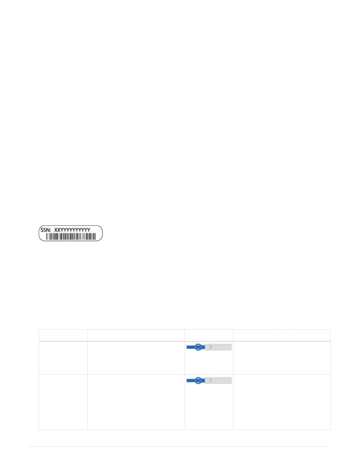 The following table identifies the types of cables you might receive. If you receive a cable not listed in the