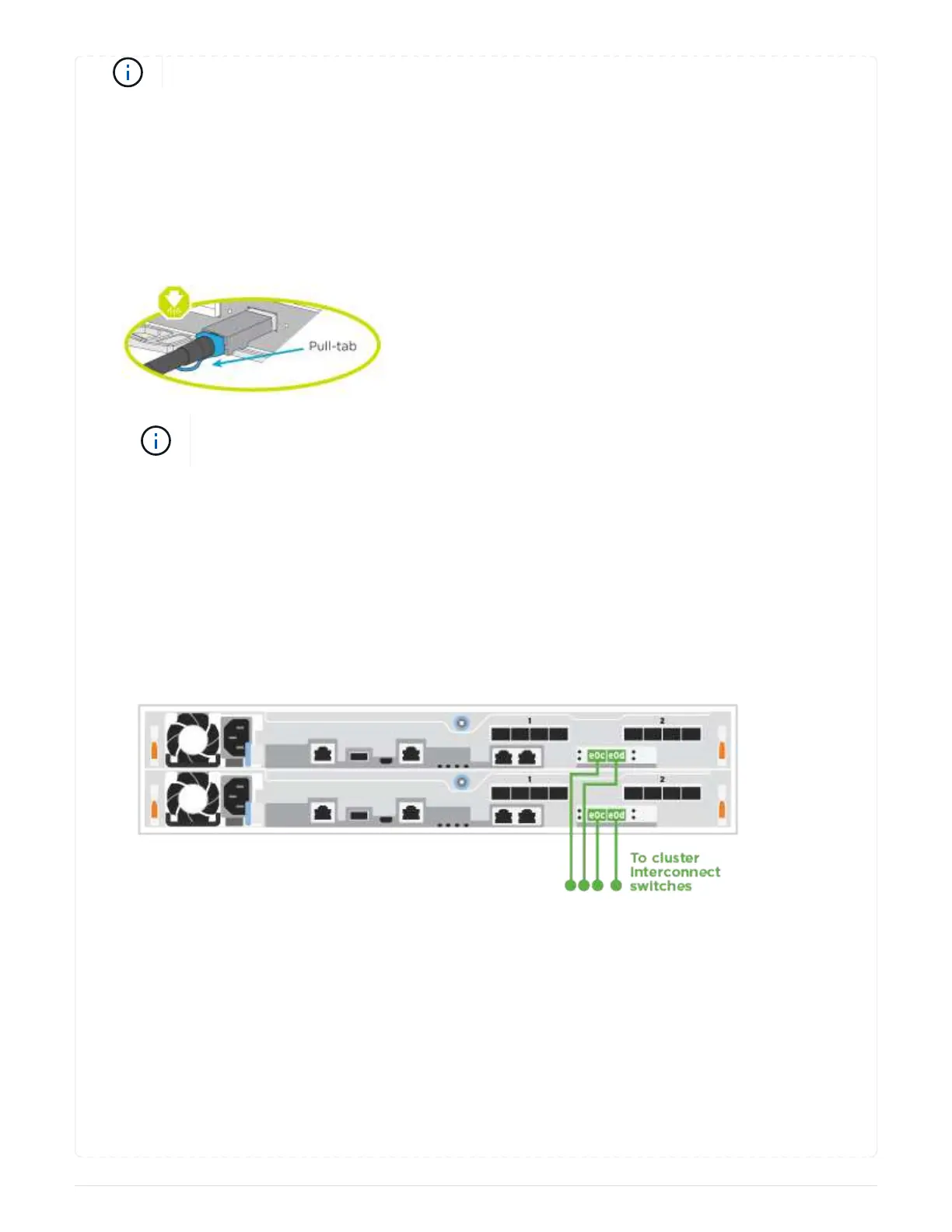 1. Cable the cluster interconnect ports e0c and e0d to the 25 GbE cluster interconnect switches.