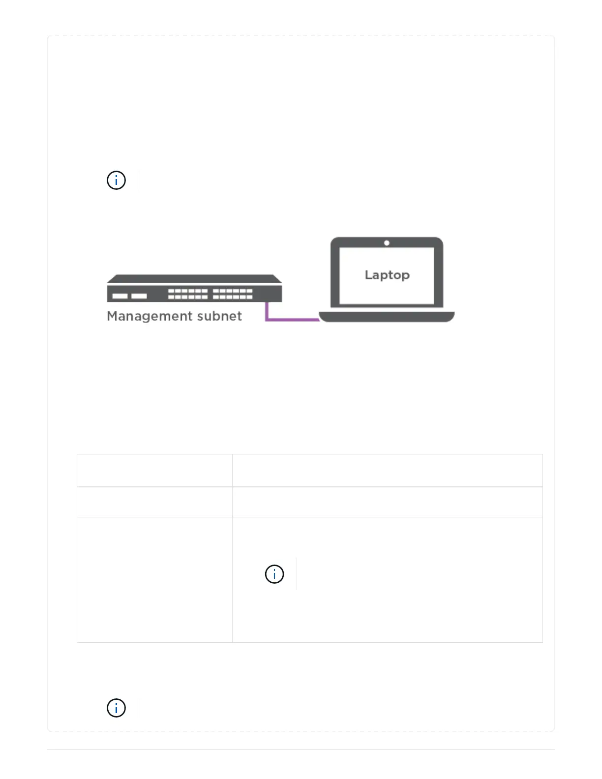 c. Assign a TCP/IP address to the laptop or console, using one that is on the management subnet.