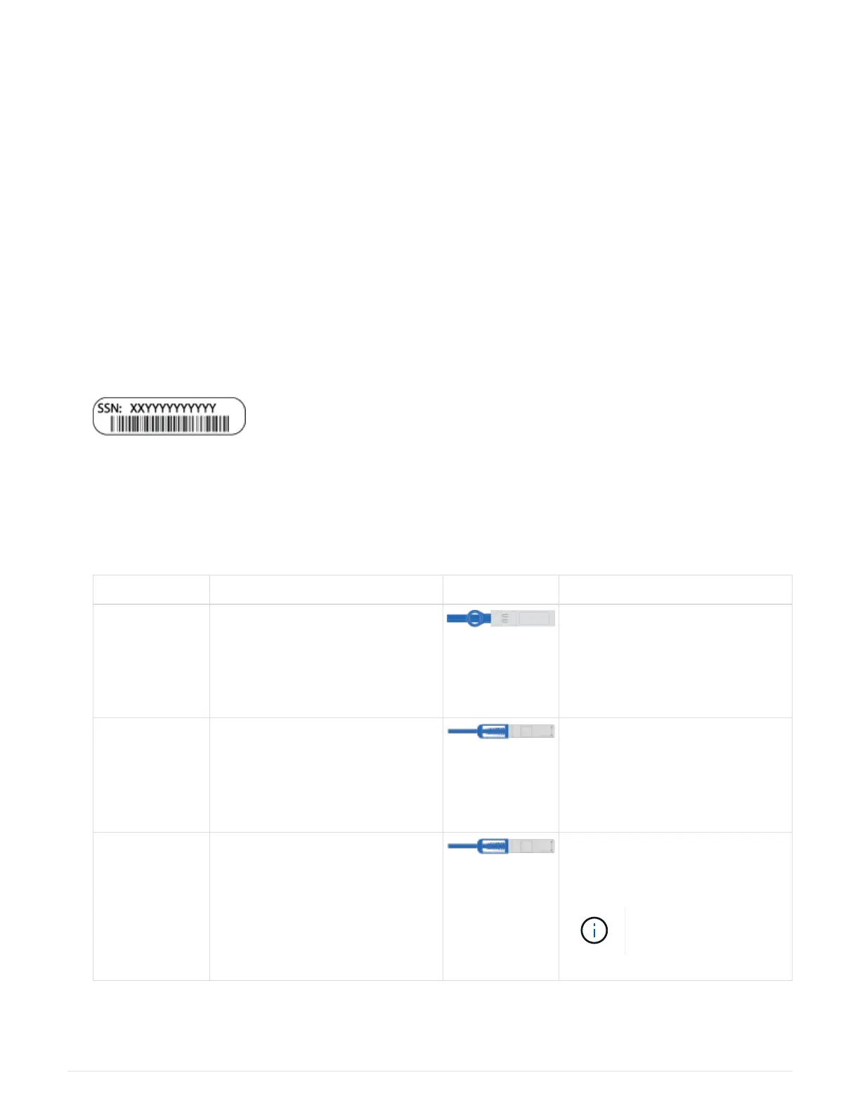 The following table identifies the types of cables you might receive. If you receive a cable not listed in the