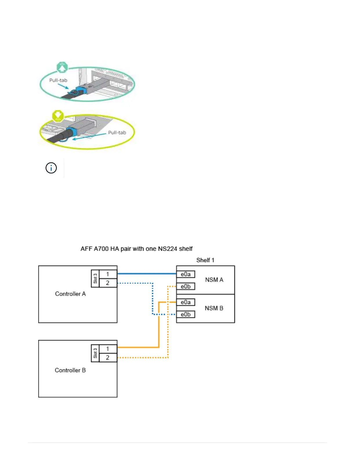 single NS224 drive shelf, or use the diagram to cable your controllers with one X91148A storage module to