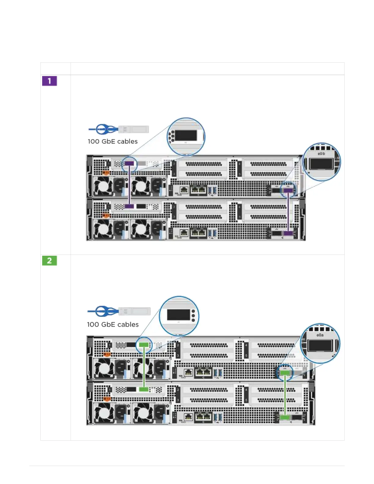 Cable the cluster interconnect ports: