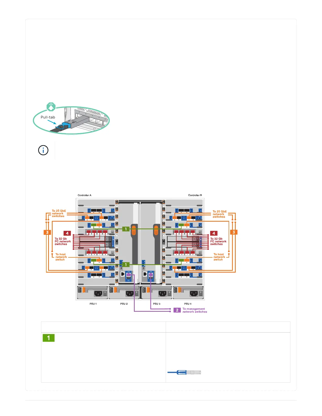 1. Use the animation or illustration to complete the cabling between the controllers and to the switches:
