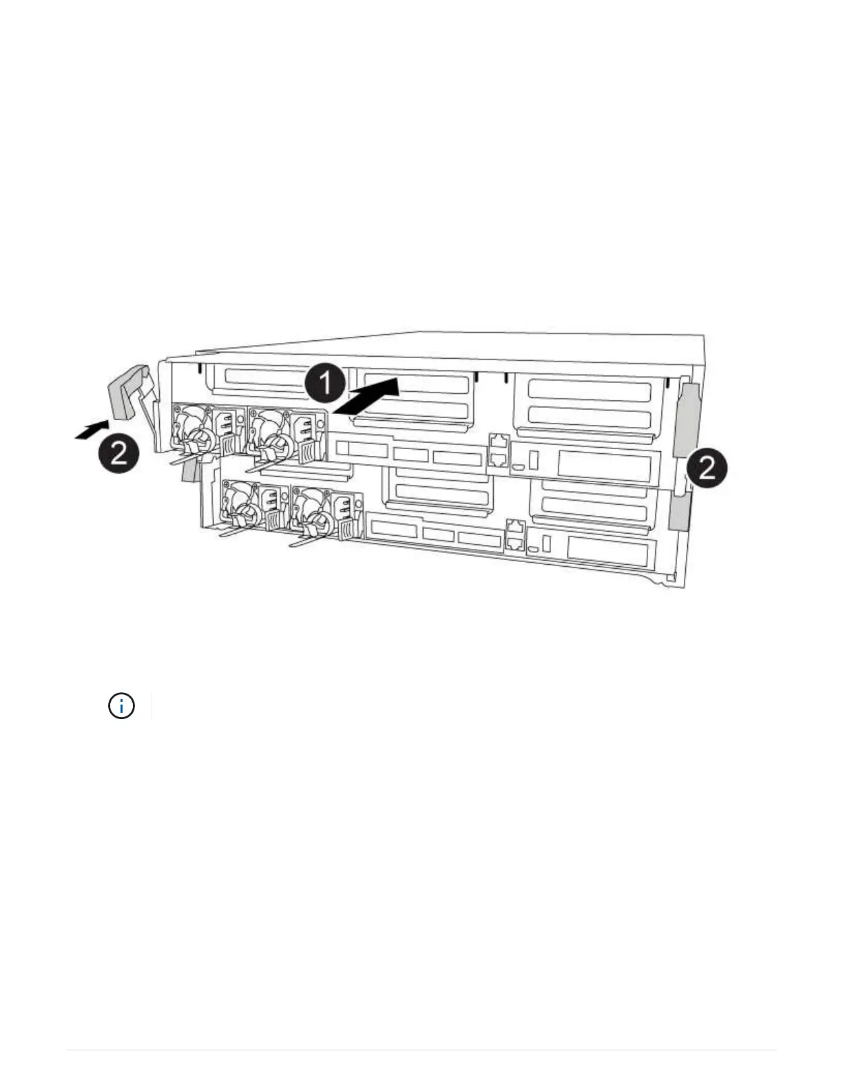 b. Using the locking latches, firmly push the controller module into the chassis until it meets the midplane