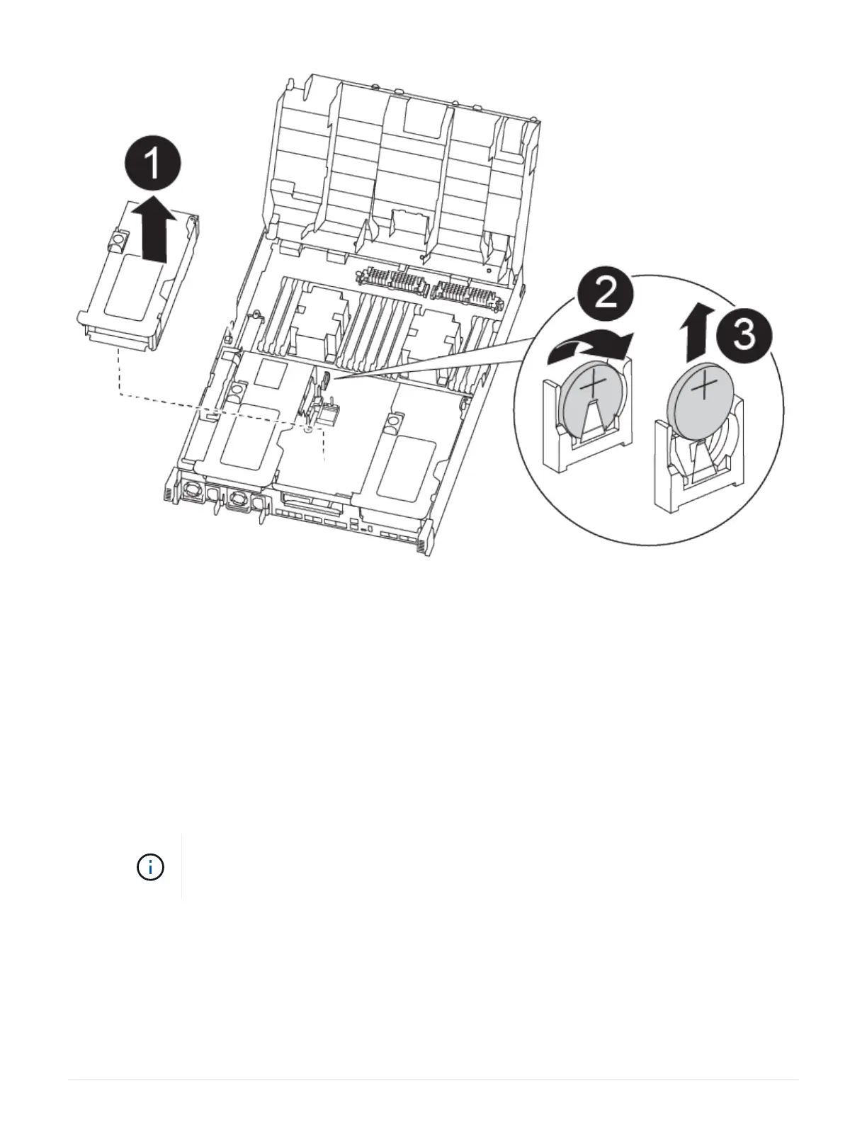 a. Using the FRU map, locate the RTC battery on the controller module.