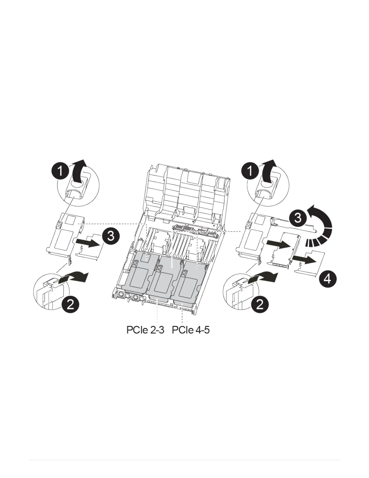 1. Move PCIe risers one and two from the impaired controller module to the replacement controller module:
