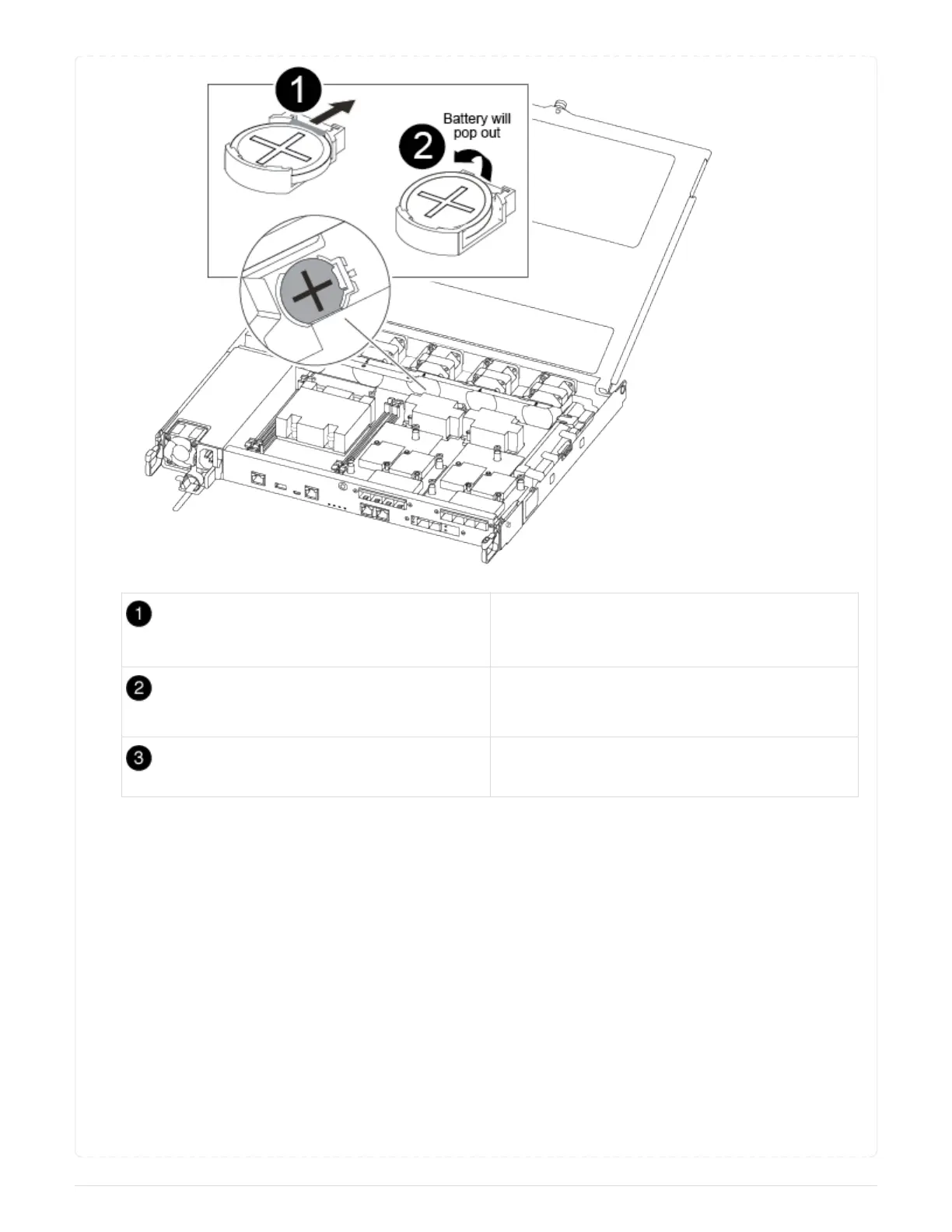 3. Locate the RTC battery holder between the heatsink and the midplane and insert it exactly as shown