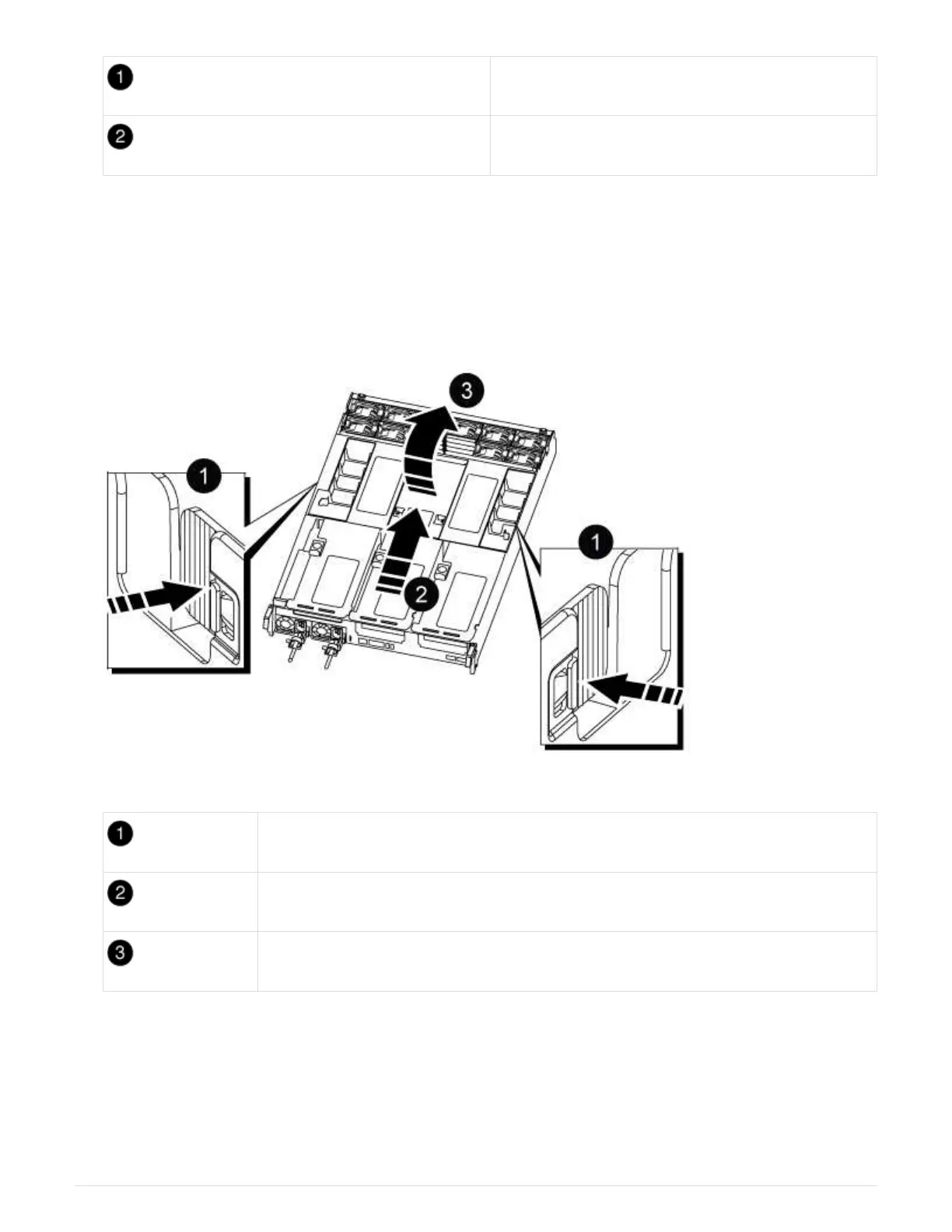b. Slide the air duct toward the fan modules, and then rotate it upward to its completely open position.
