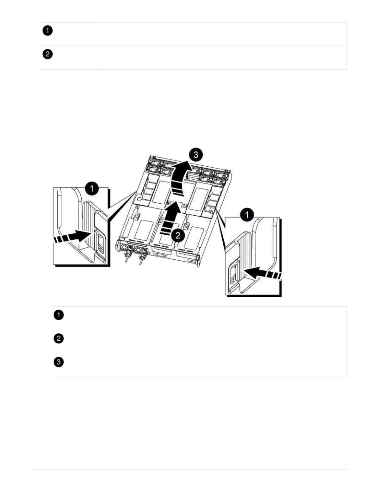 b. Slide the air duct toward the fan modules, and then rotate it upward to its completely open position.