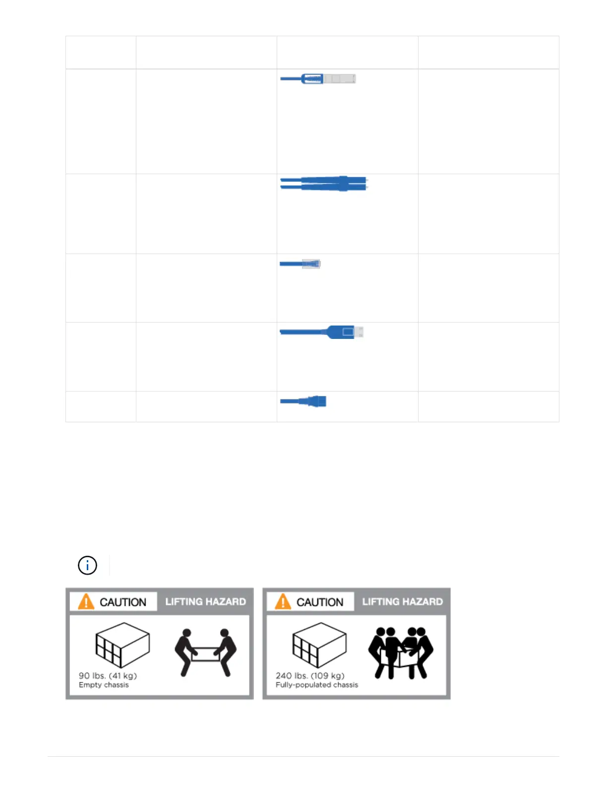 Power cables Not applicable Powering up the system