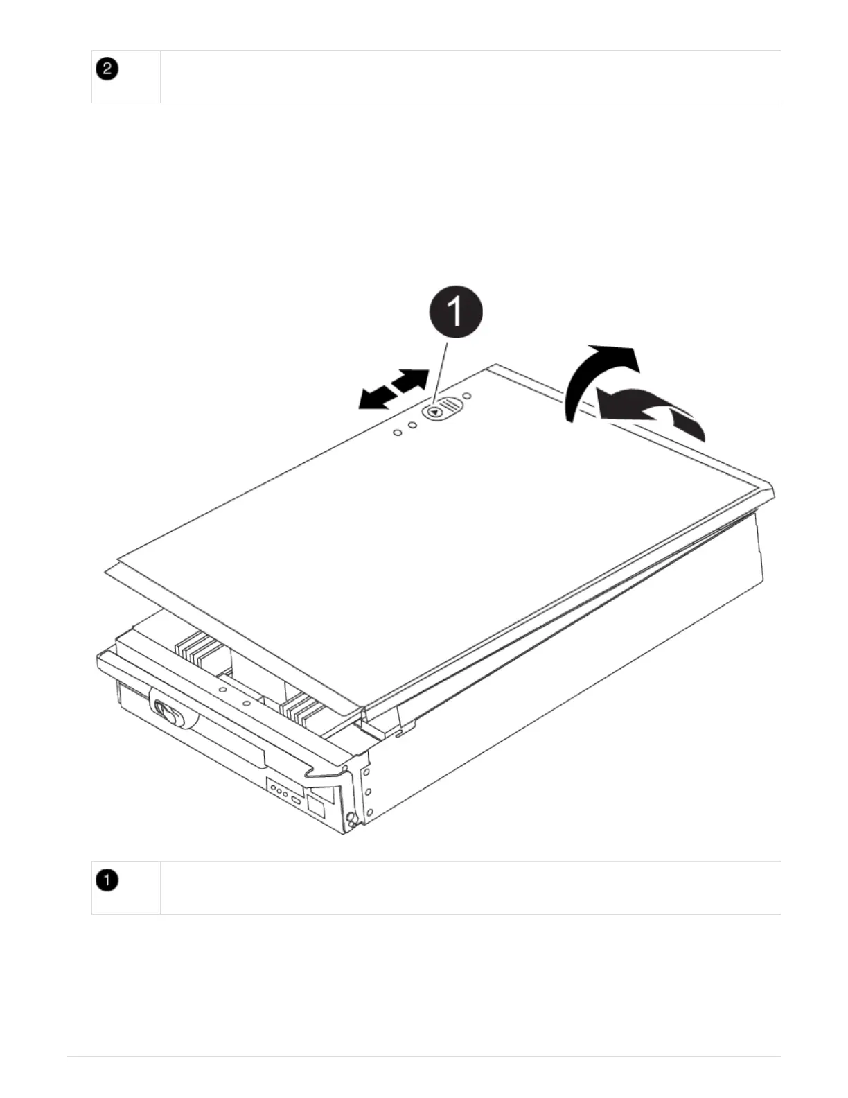 5. Place the controller module lid-side up on a stable, flat surface, press the blue button on the cover, slide