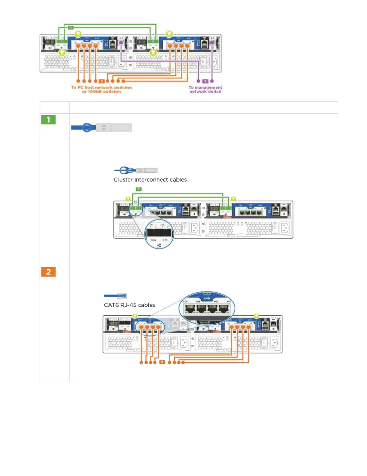 Cable the cluster interconnect ports to each other with the cluster interconnect cable