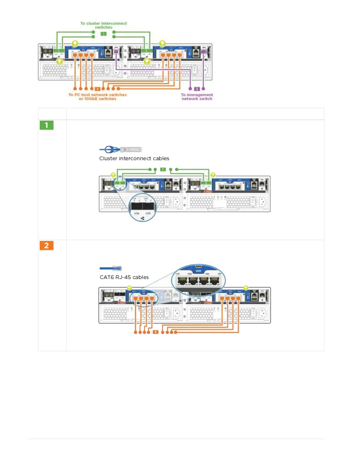 Cable e0a and e0b to the cluster interconnect switches with the cluster interconnect cable: