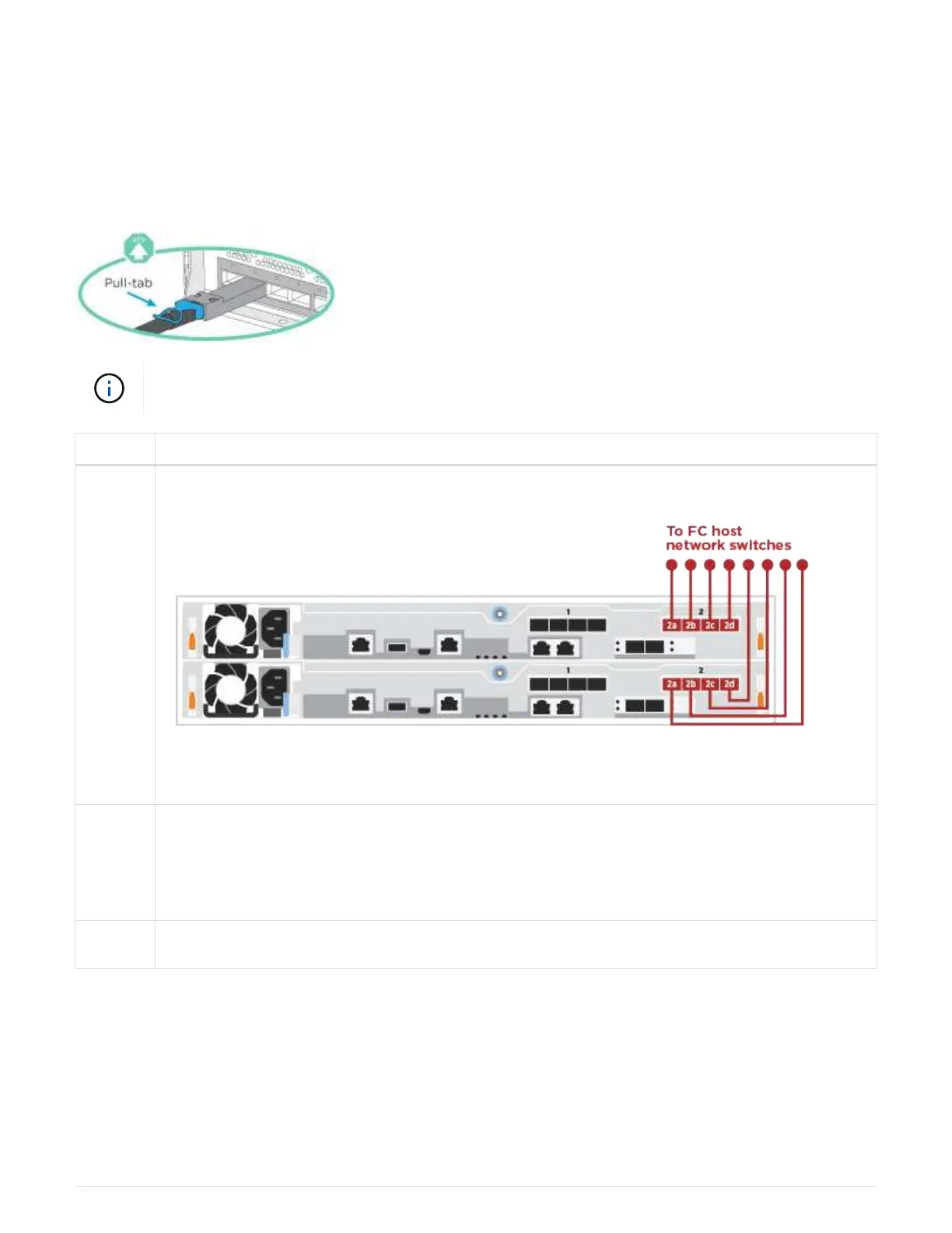 Fibre Channel ports on the controllers are connected to Fibre Channel host network switches.