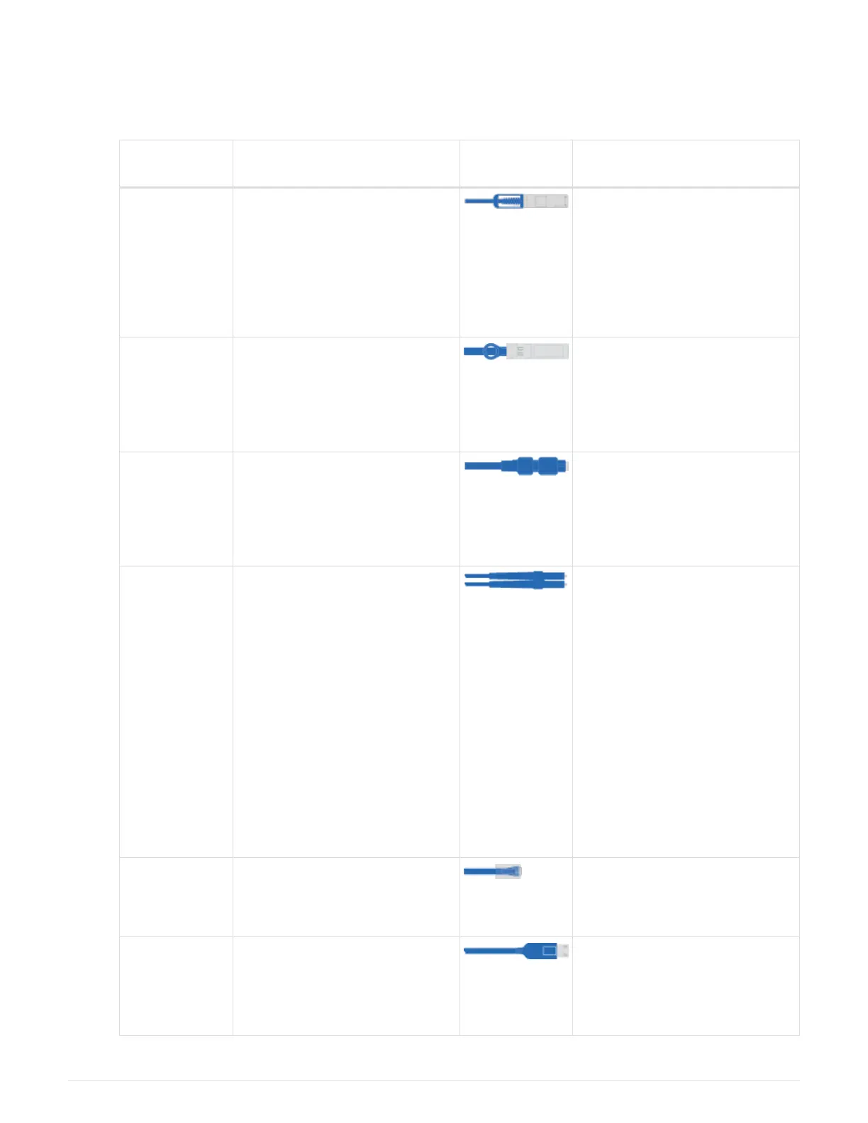 The following table identifies the types of cables you might receive. If you receive a cable not listed in