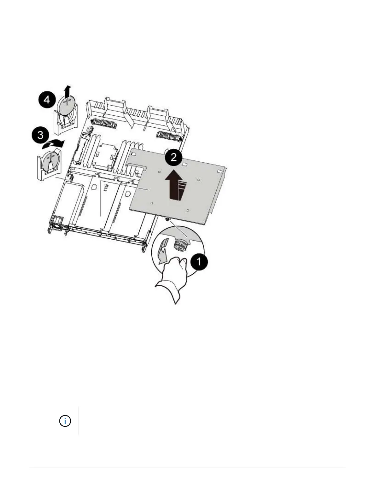 a. Using the FRU map, locate the RTC battery on the controller module.