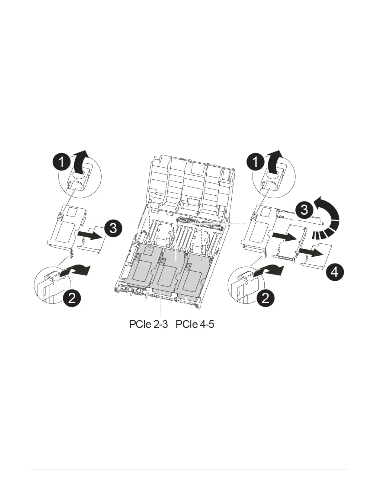 1. Move PCIe risers one and two from the impaired controller module to the replacement controller module: