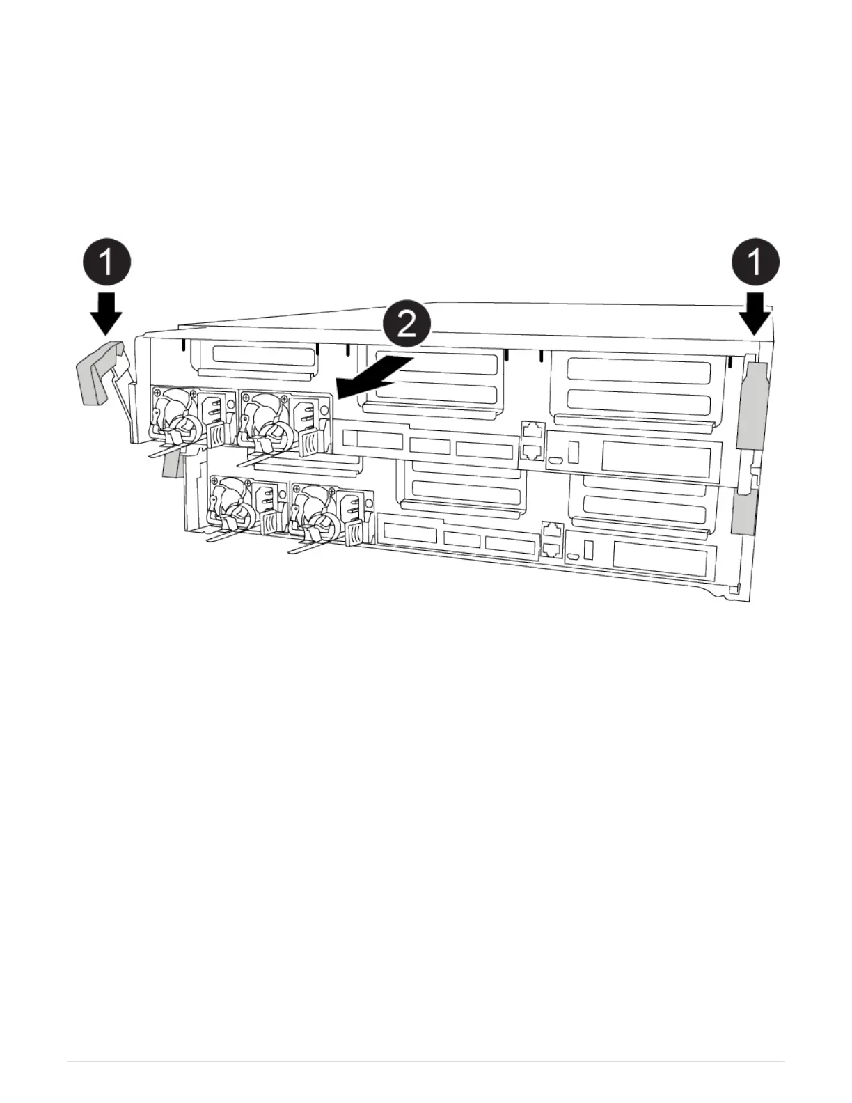 2. Release the power cable retainers, and then unplug the cables from the power supplies.