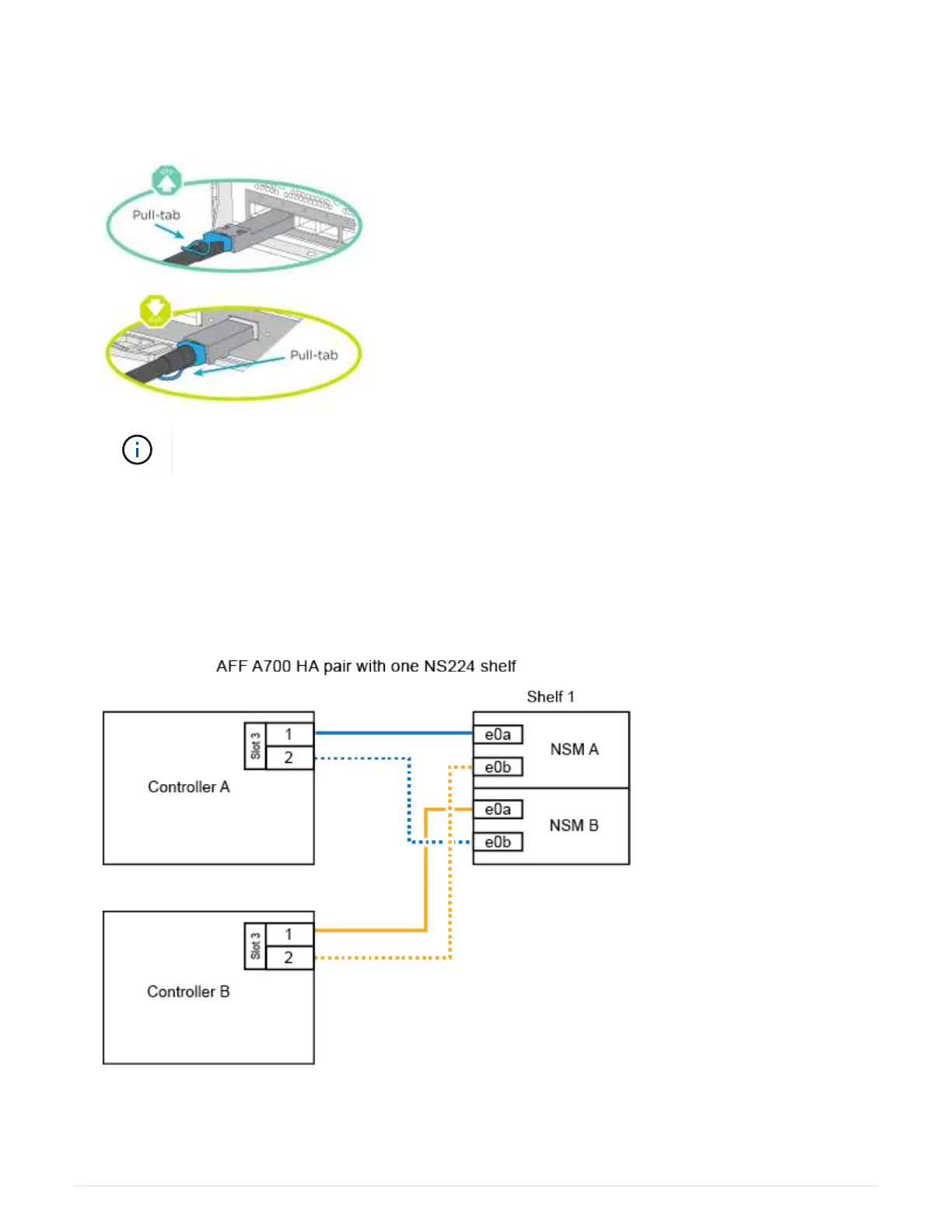 single NS224 drive shelf, or use the diagram to cable your controllers with one X91148A storage module to