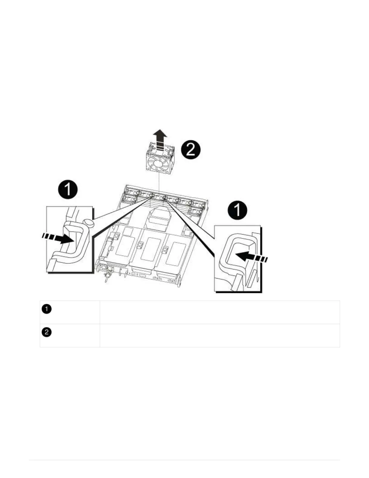 1. Remove the fan module by pinching the locking tabs on the side of the fan module, and then lifting the fan
