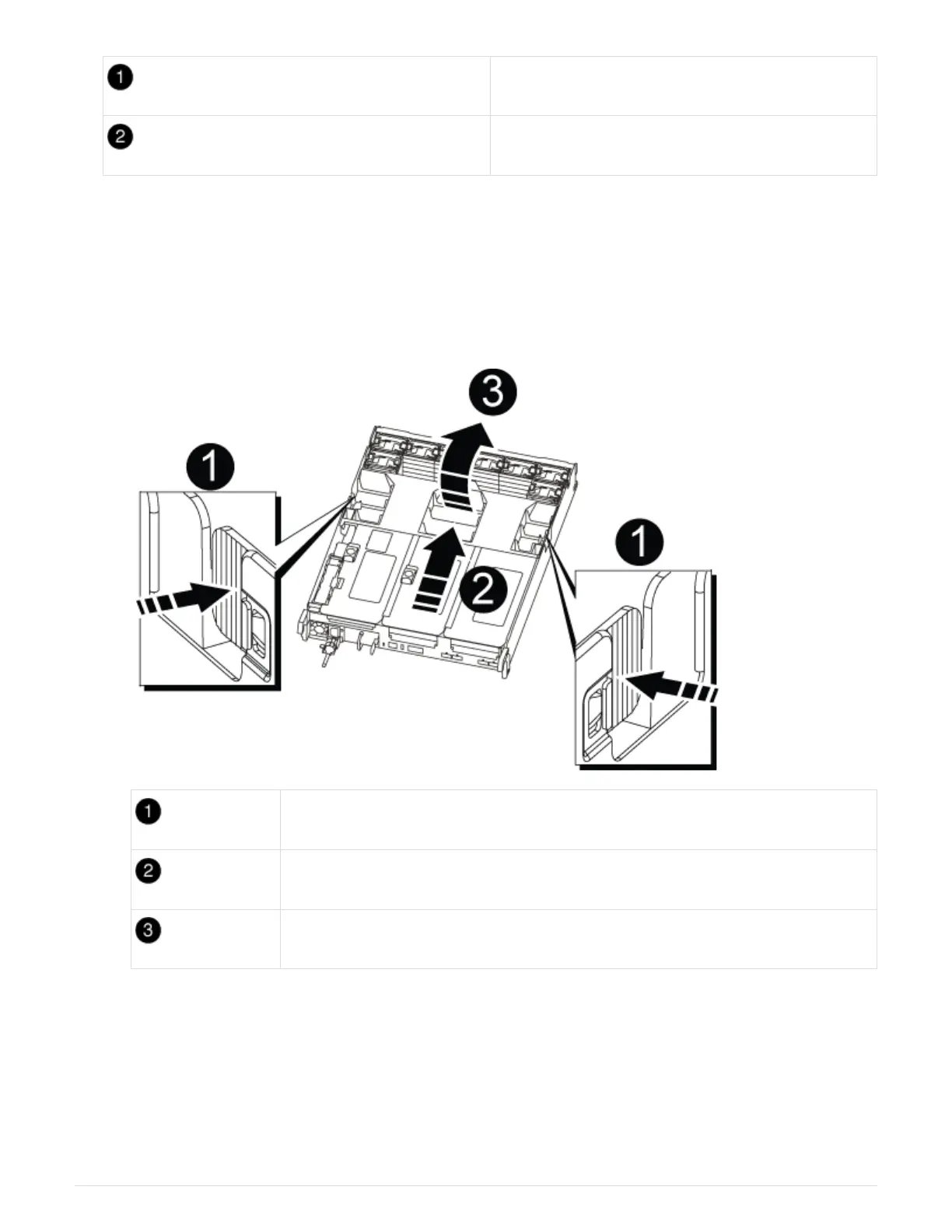 b. Slide the air duct toward the fan modules, and then rotate it upward to its completely open position.
