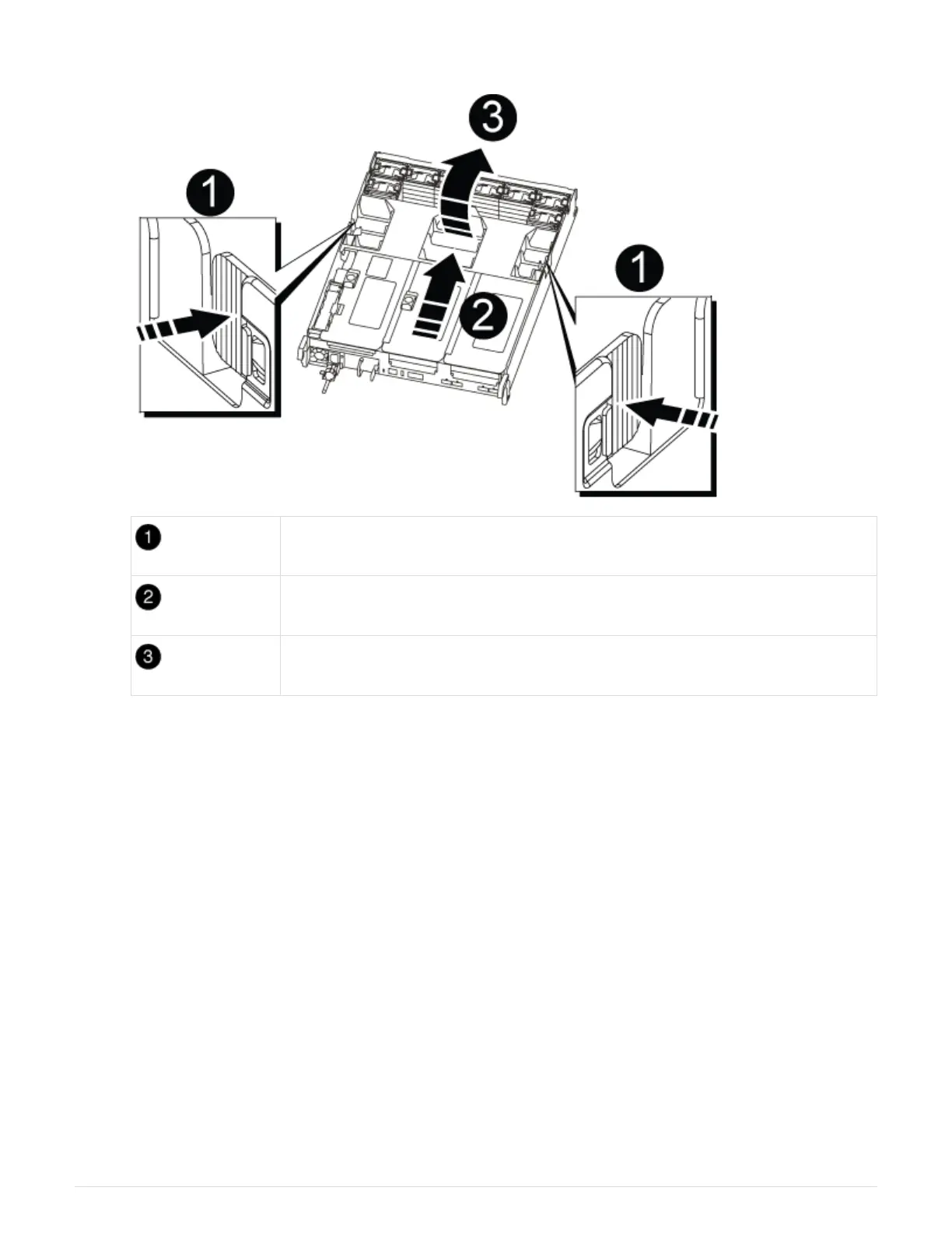 3. Remove the fan module by pinching the locking tabs on the side of the fan module, and then lifting the fan