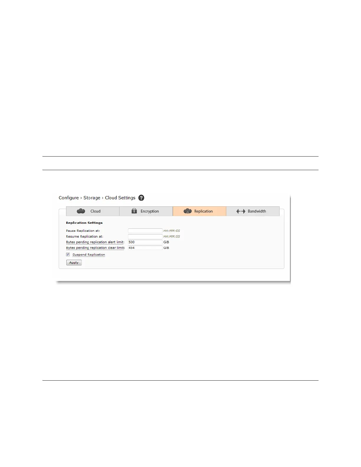 4. To resume replication, clear the check box, Suspend Replication, and click Apply.
