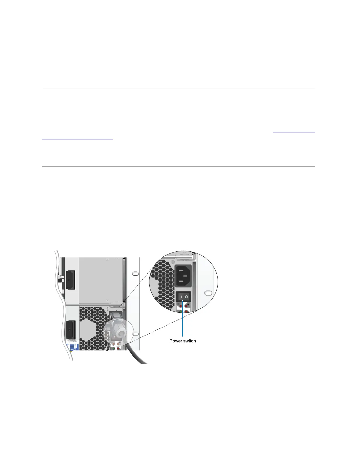 2. Attach the power cable to the new shelf. To power on the disk shelf for both power supplies, flip the power switches