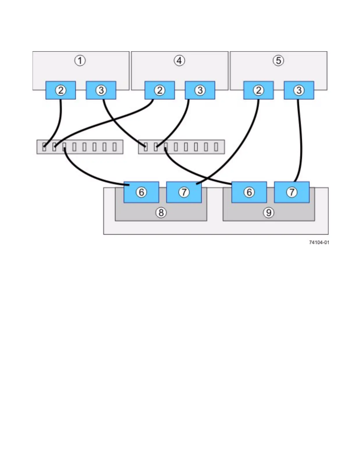 Figure 47 Mixed Topology – Three Hosts and a Dual Controller-Drive Tray