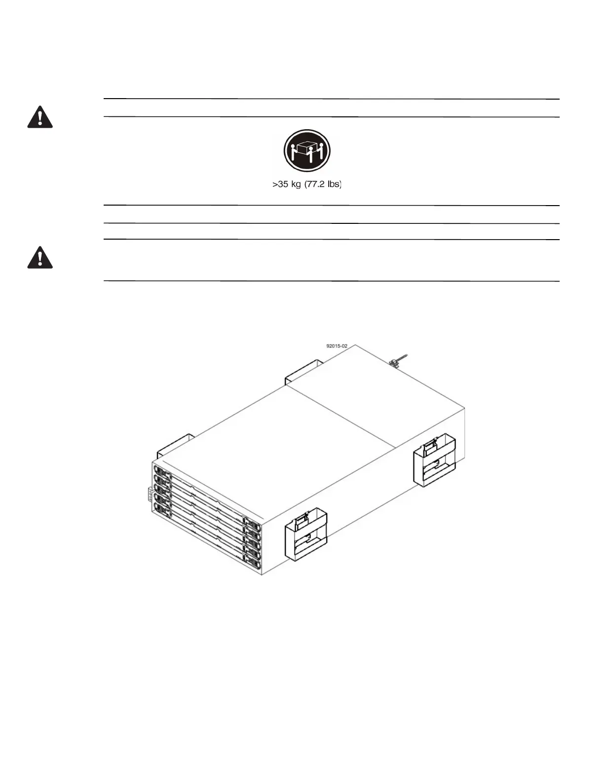 WARNING (W15) Risk of bodily injury – An empty tray weighs approximately 56.7 kg (125 lb). Three persons