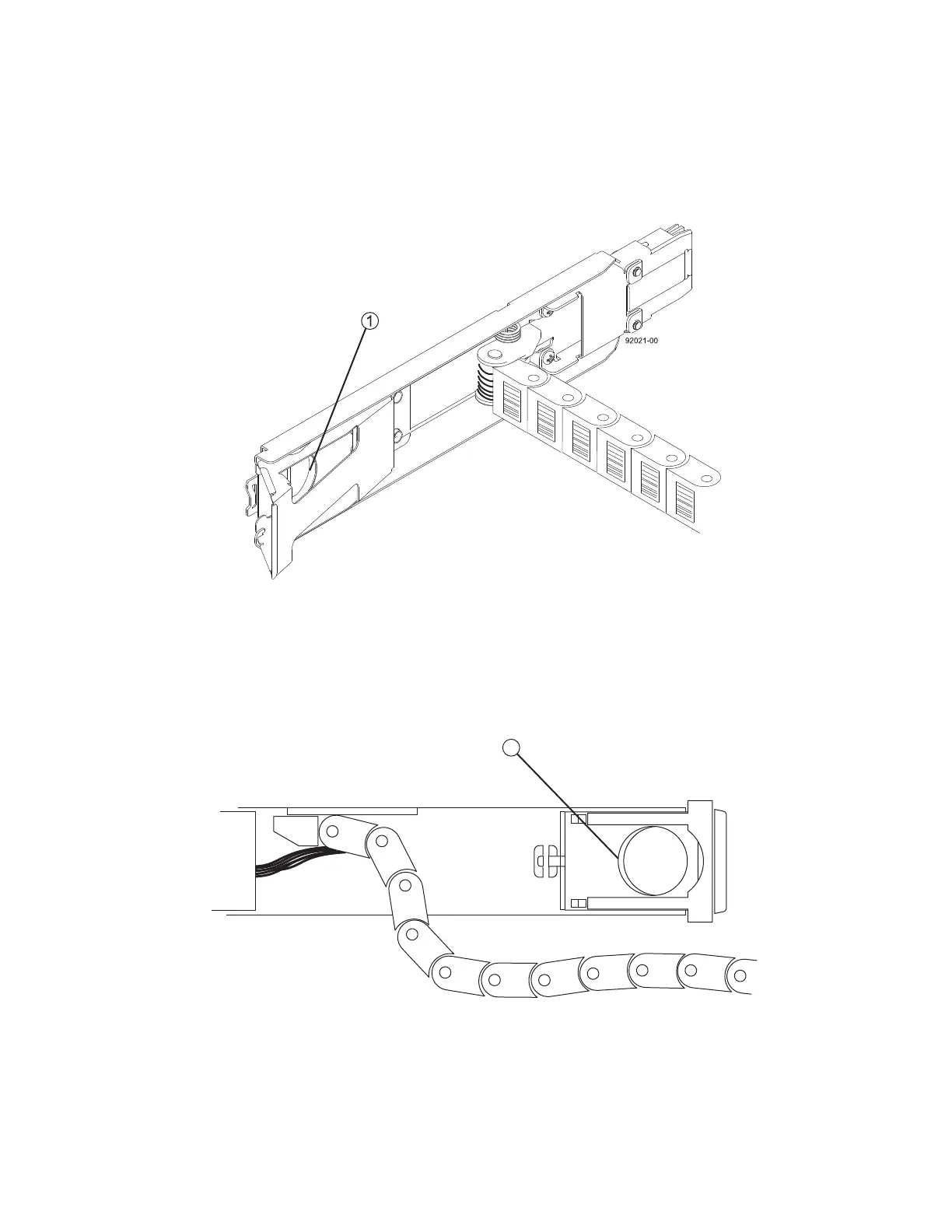 4 Disconnect the right cable chain mounting bracket from the midplane. Insert your finger into the