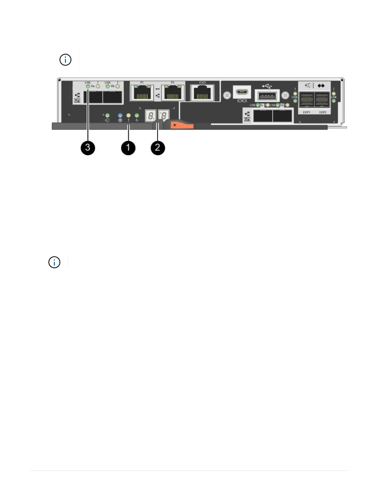 ◦ The amber Attention LED on the controller turns on and then turns off, unless there is an error.