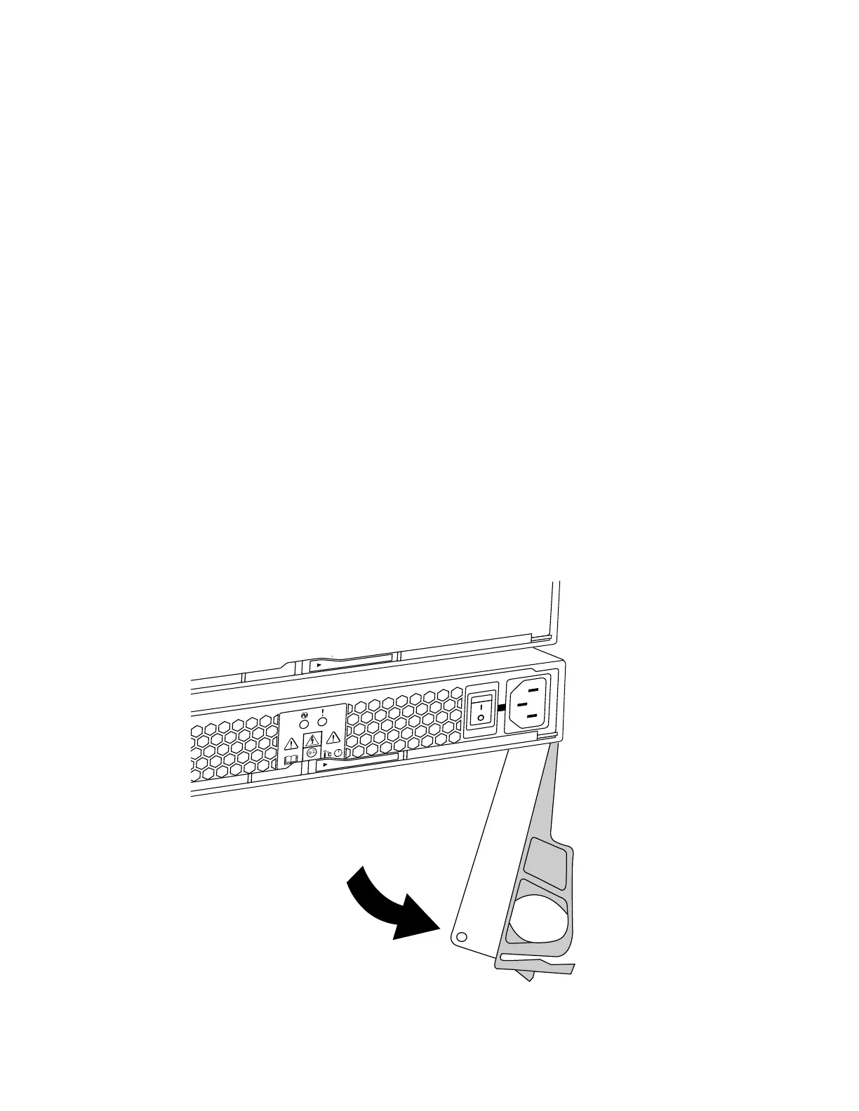 3. Squeeze the latch on the power supply cam handle, and then open the cam handle to fully release