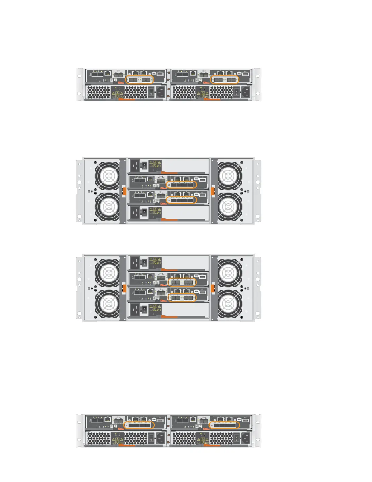 The following figures show an E5760 controller shelf before and after a HIC upgrade. The two HICs