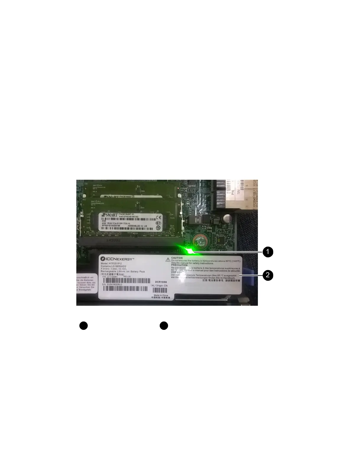 Confirm that the green LED inside the controller (between the battery and the DIMMs) is off.